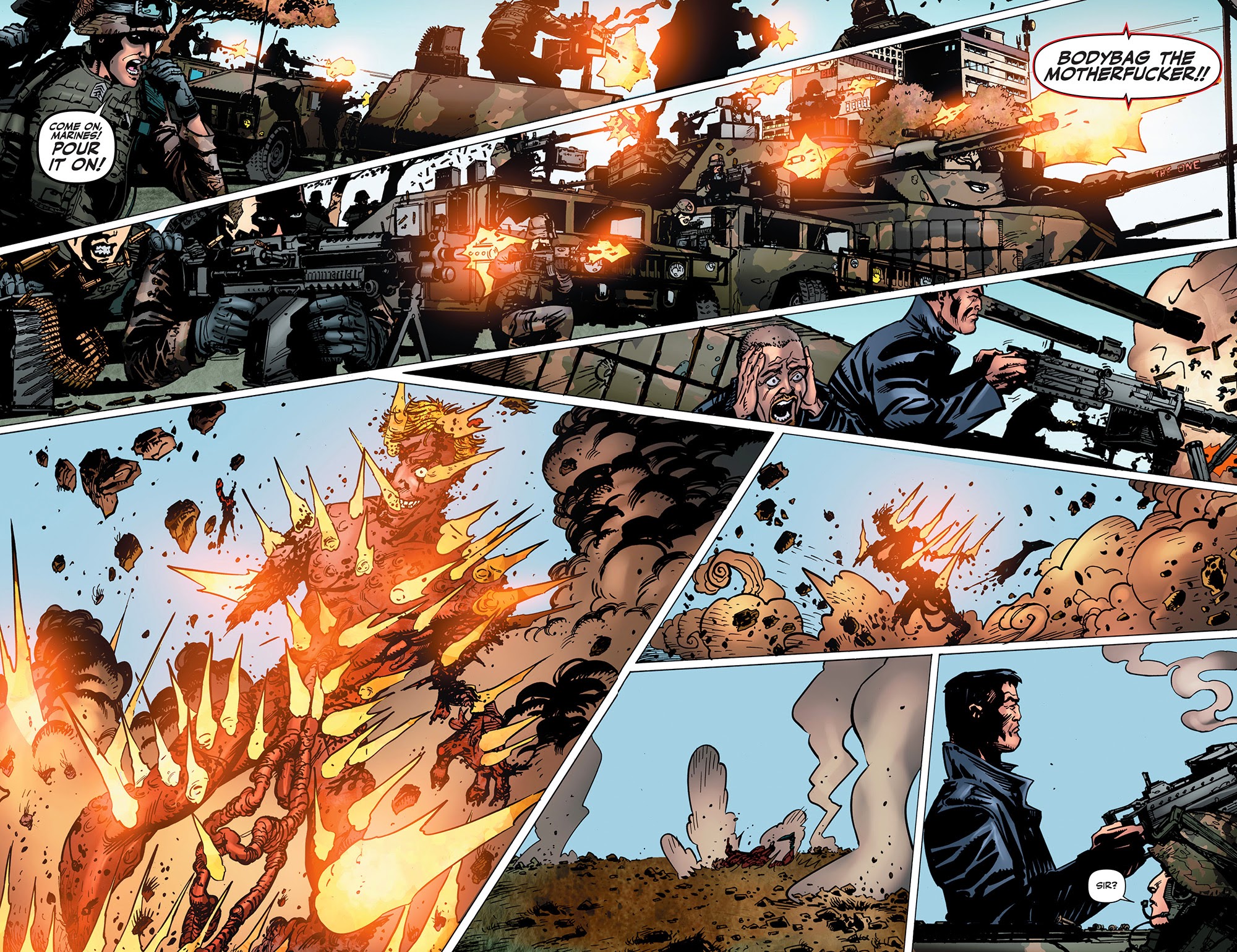 - Completely unfazed from gunfire.