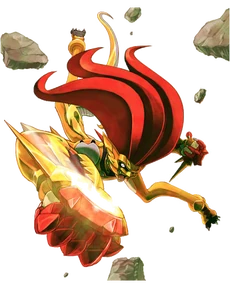 - Proud Fist: By pushing himself past his limits through his desire to avenge his fallen comrades, Kazuma evolved his Alter even further, achieving the Proud Fist form. In this state, Kazuma's Alter extends to cover his entire body in an armored bodysuit, greatly boosting his physical abilities and letting him freely fly using a tail-like appendage that replaces his propeller from Shell Bullet Ultimate.